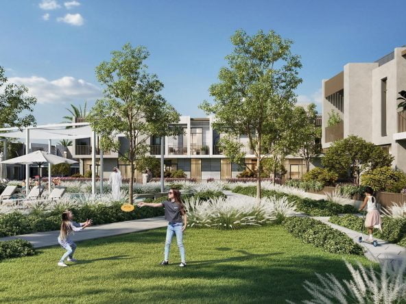 Noor Majid Real Estate featuring the Stunning 4 Bedroom Townhouse in JVC Sydney Villa community, Jumeirah Village Circle, District 18. The townhouse has 5 ensuite bathrooms, top-notch kitchen with gas cooking hobs, fitted appliances and marble surfaces. An incredible opportunity is on offer with this two-storey, single-row home, set in a wonderful master-planned location, adjacent to the nearby restaurants, clinic, school, supermarket and local shops.